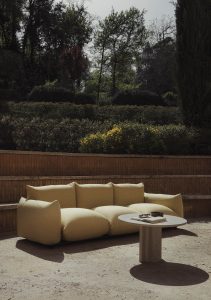 Connection to the outdoors was a big focus for Arflex this year, and rightly so – outdoor living has risen to the top of homeowners’ wish lists and, as a result, has become a top priority for architects and designers in the residential/hospitality space. The Marenco Outdoor collection, designed by Mario Marenco — “an iconic piece,” according to Rama — includes a linear sofa with soft, rounded shapes that are ideal for both hospitality and residential outdoor settings. The sofa is a must-have thanks to its unique design and extensive modularity!