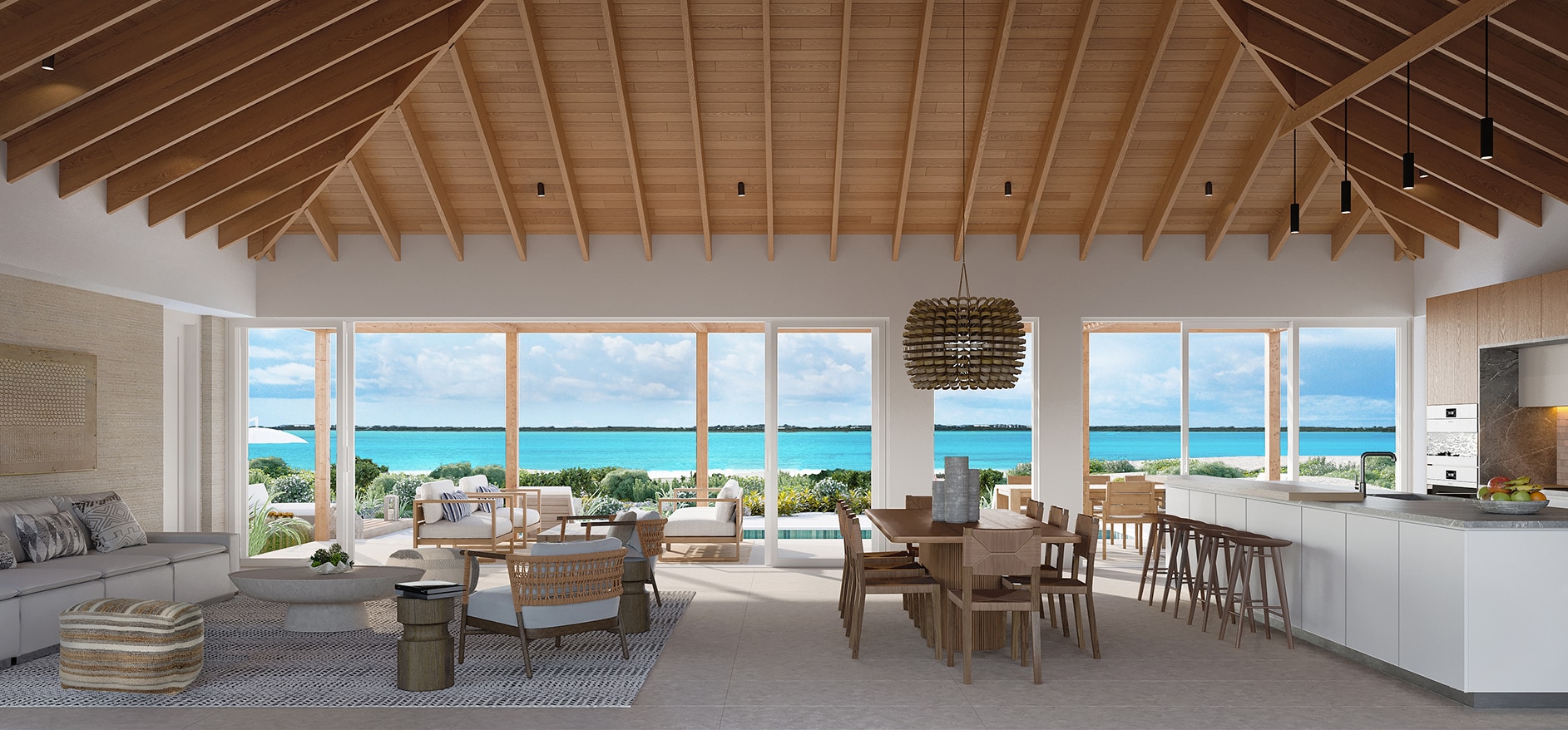 Custom kitchens and bathrooms at Sailrock South Caicos reflect a balance of coastal restraint and refined materiality, featuring Modulnova. Designed to complement the surrounding landscape, each space emphasizes clean lines, integrated functionality, and a quiet sense of luxury. The result is a cohesive residential experience shaped by light, texture, and thoughtful detailing.